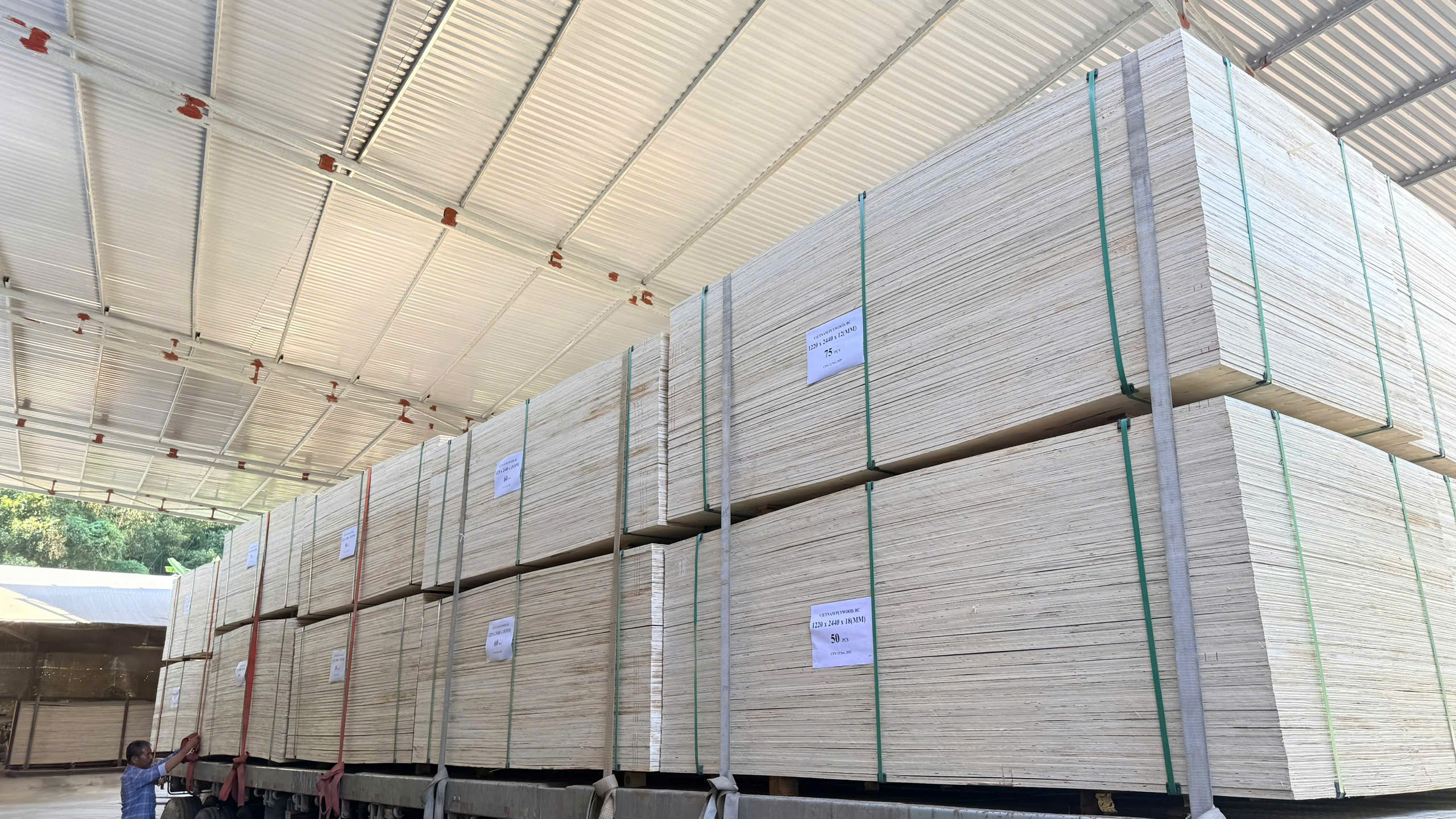 Packing and securing are treated as an integral part of quality assurance. Depending on application and transportation conditions, plywood sheets are bundled and secured using steel or plastic straps, combined with edge protection and surface safeguards.